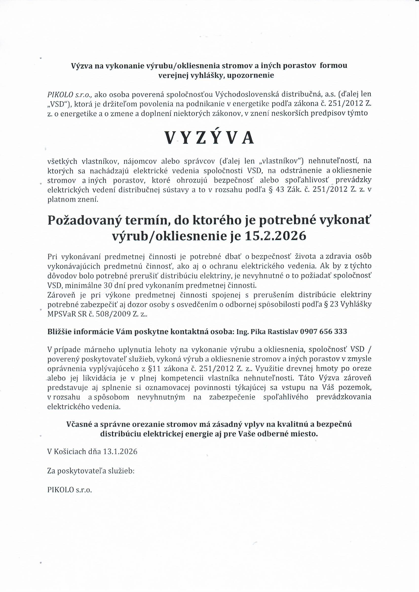 Výzva na orezanie stromov